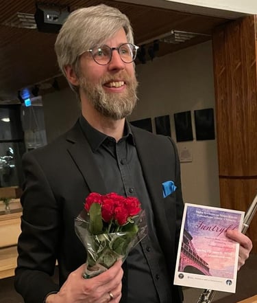 July 2025, Participation in the annual Vestlandsk Summer Symphony (VSS) for the fourth time. VSS is an orchestra course organized by the Norwegian Symphony Orchestras' National Association. This year, I had the great honor of playing several of my own compositions, including works for symphony orchestra and chamber music. The result was overwhelmingly positive feedback and recognition from professional and amateur musicians of all ages. They described my music as beautiful, inspiring, minimalist, with rich, wonderful textures and harmonies. The feedback came from all sections of the orchestra. This means a lot to hear, as I strive to write inclusive music that gives all instrument groups an important role.